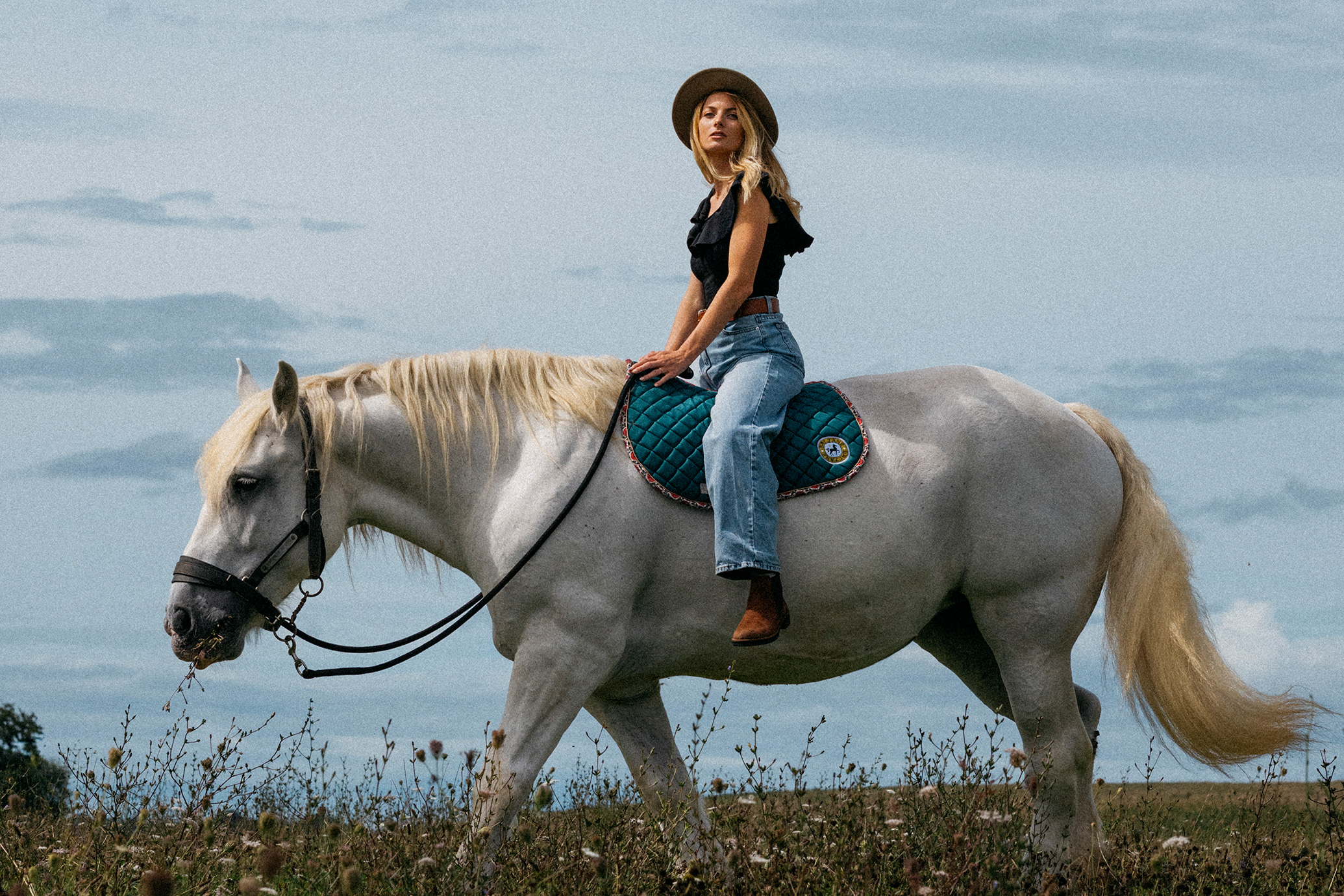 Balzane est aussi une rencontre entre le monde exigeant de l’équitation et l’univers raffiné des matières d’exception, où chaque tissu raconte un voyage, une émotion. Balzane, où chaque tapis est pensé comme une pièce de collection, confectionnée dans le raffinement discret des maisons artisanales, pour honorer le cheval autant que sublimer sa cavalière. Chaque pièce est unique et prend vie entre les mains de femmes qui cousent et brodent avec patience, précision et amour.