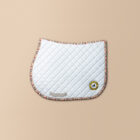 Chaque tapis Balzane est pensé comme une pièce unique, où technicité, élégance et savoir-faire artisanal se rencontrent. Velours haut de gamme : le dessus du tapis est confectionné en velours doux et résistant, apportant un toucher luxueux tout en restant adapté à l’effort. Bordure imprimée exclusive : chaque tissu de bordure est imprimé spécialement pour Balzane, avec ce motif unique qui affirme le caractère de la marque. Passepoil doré : inspiré des parures et saris indiens. Détail précieux et délicat. Sangle artisanale : confectionnée à la main, elle est ponctuée de fines touches colorées et dorées. Doublure en nid d’abeilles : très absorbante, elle permet d’évacuer rapidement la transpiration pour un confort optimal lors de l’effort. 100% coton, elle assure un contact sain avec le dos du cheval. Mousse intérieure : moelleuse mais stable, elle offre un excellent amorti sans compromettre le contact avec la selle. Sac Balzane, assorti et brodé pour que Balzane ne vous quitte jamais. Coupe anatomique pour libérer le garrot et la ligne dorsale. Un tapis à la fois fonctionnel, confortable et singulier, pensé pour sublimer chaque monte. Un lien respectueux entre vous et votre cheval.